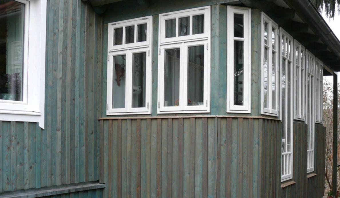 Das Svarre-Element vereint modernes Design mit einer wartungsfreien Außenfläche. Die Besonderheit dieses Holzfensters ist die Glasfläche, die den Rahmen von außen abdeckt. Die Glaskante ist eingefärbt, so dass die Farbe das Flügel- und Rahmenholz komplett abdeckt: Es ist von außen kein Holz mehr sichtbar.